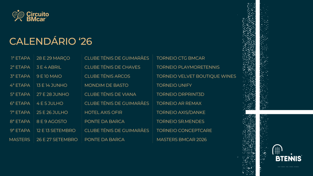 O Btennis Club, juntamente com os seus patrocinadores apresentam o Circuito BMcar 2026.